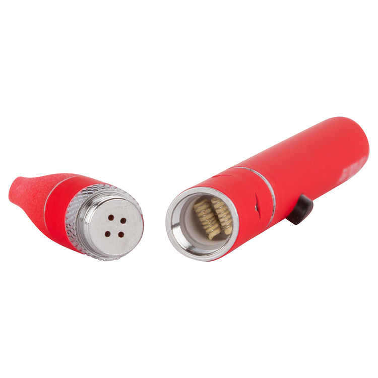 Used with wax in particular, the “Slim” Wax Vape Pen utilizes an atomizer with dual ceramic rods and titanium coils. Both rods and coils sit inside of a ceramic heating chamber. Known for heating up more gradually than quartz, this ceramic material produces more flavorful vapor and also uses up the wax more slowly. One of the primary benefits of having a ceramic heating chamber is that you can re-vaporize any excess wax. Any concentrate not directly vaporized by the coils will drop down to the ceramic chamber. While this chamber does thoroughly vaporize wax, it will also accumulate some left-overs. The advantage of this is that the remaining wax can be collected and re-vaporized.